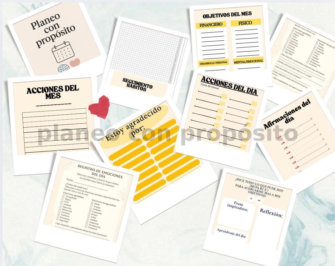 Planificador de Propósito es más que un planificador digital. Es una guía diaria para vivir con claridad, propósito y bienestar emocional. Toma las riendas de tu vida y empieza a vivir con propósito. Consigue tu copia digital ahora, y reimprímela cuantas veces necesites para organizar tu día, mes y año, y comenzar tu camino hacia una vida más plena y con propósito.